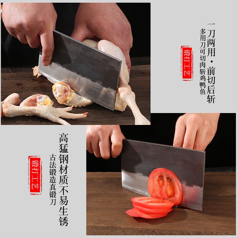 龙泉菜刀家用刀具厨房锻打斩切两用刀具圆头锋利斩骨刀商用杀鱼刀