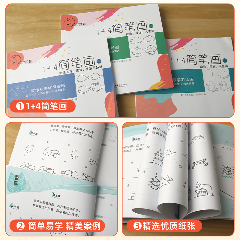 趣指袋儿童1 8岁幼儿涂色启蒙绘画控笔练习食物服饰人物篇动物植物风景篇交通工具建筑生活用品篇 4简笔画3