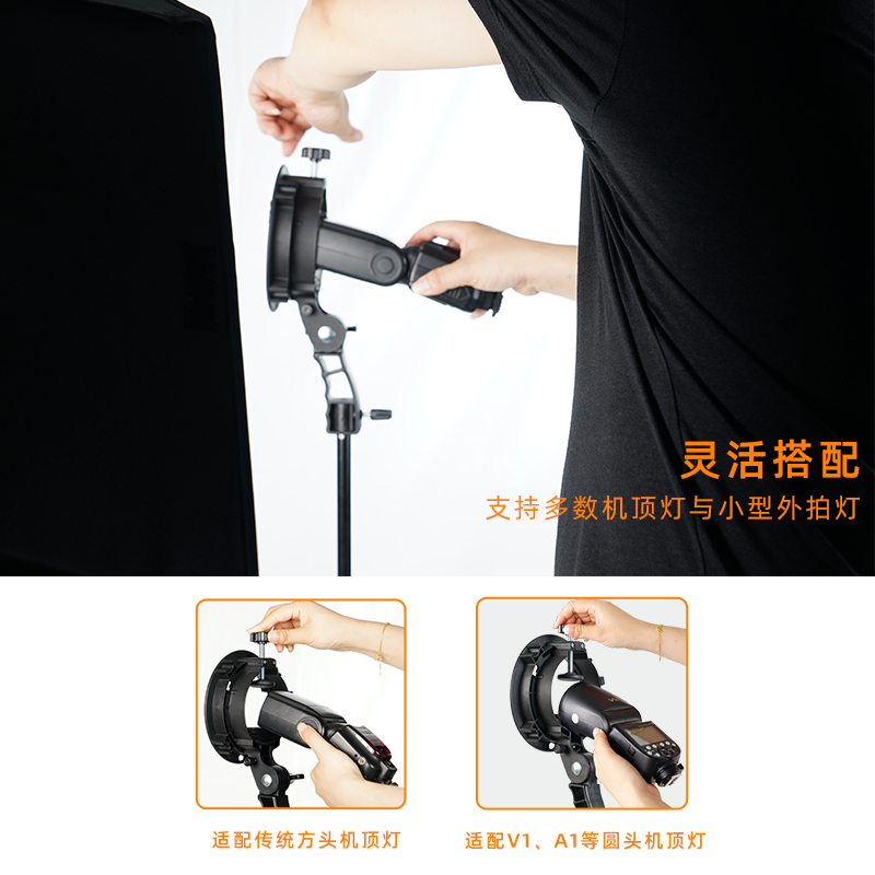 S2闪光灯支架便携机顶相机闪光灯柔光箱 AD300pro AD200 S卡盘保荣卡口转接配件通用 V860III 神牛S型卡盘