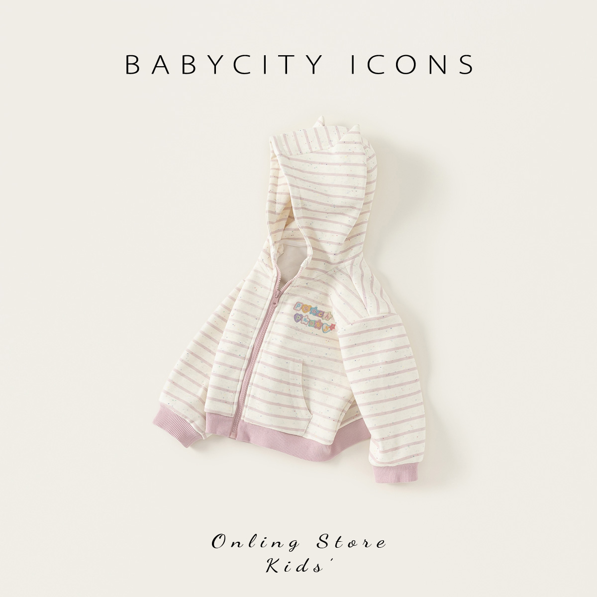 潮 洋气女孩条纹连帽上衣休闲女宝百搭秋装 贝贝城女童秋装 外套新款