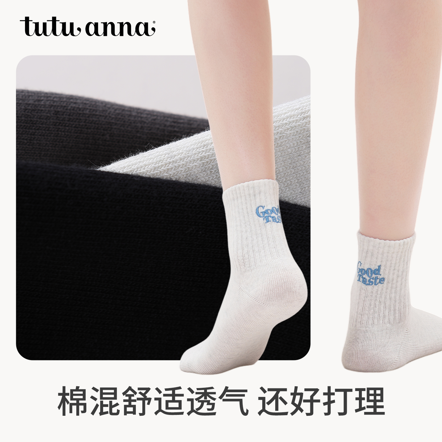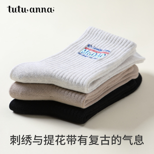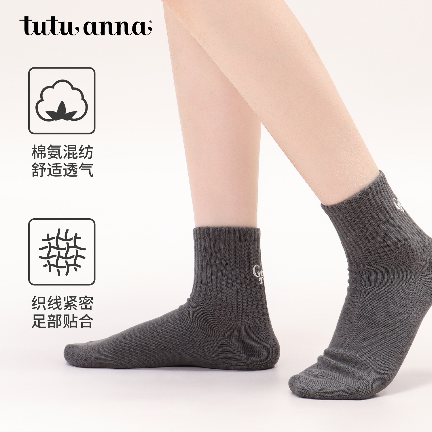 帕兰朵袜子女中筒袜春秋季 棉袜吸汗透气纯色百搭堆堆袜防臭长筒袜