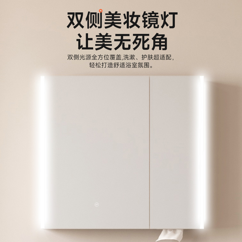 法恩莎奶油风智能美妆镜陶瓷一体盆卫生间洗手盆洗漱台浴室柜组合