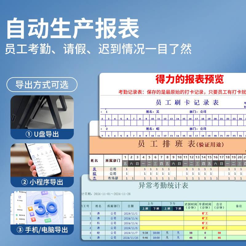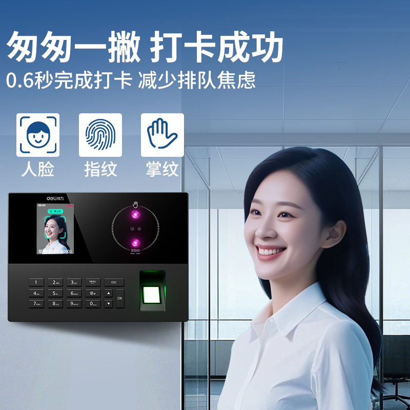 得力员工打卡考勤机人脸识别打卡机办公室食堂员工上下班掌静脉识别签到器工地免接触面部刷脸掌纹指纹一体机