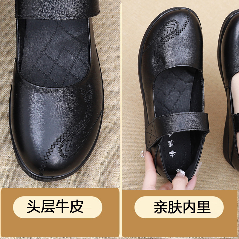 中老年人皮鞋 婆婆款 春秋款 浅口软底防滑透气奶奶鞋 单鞋 真皮妈妈鞋