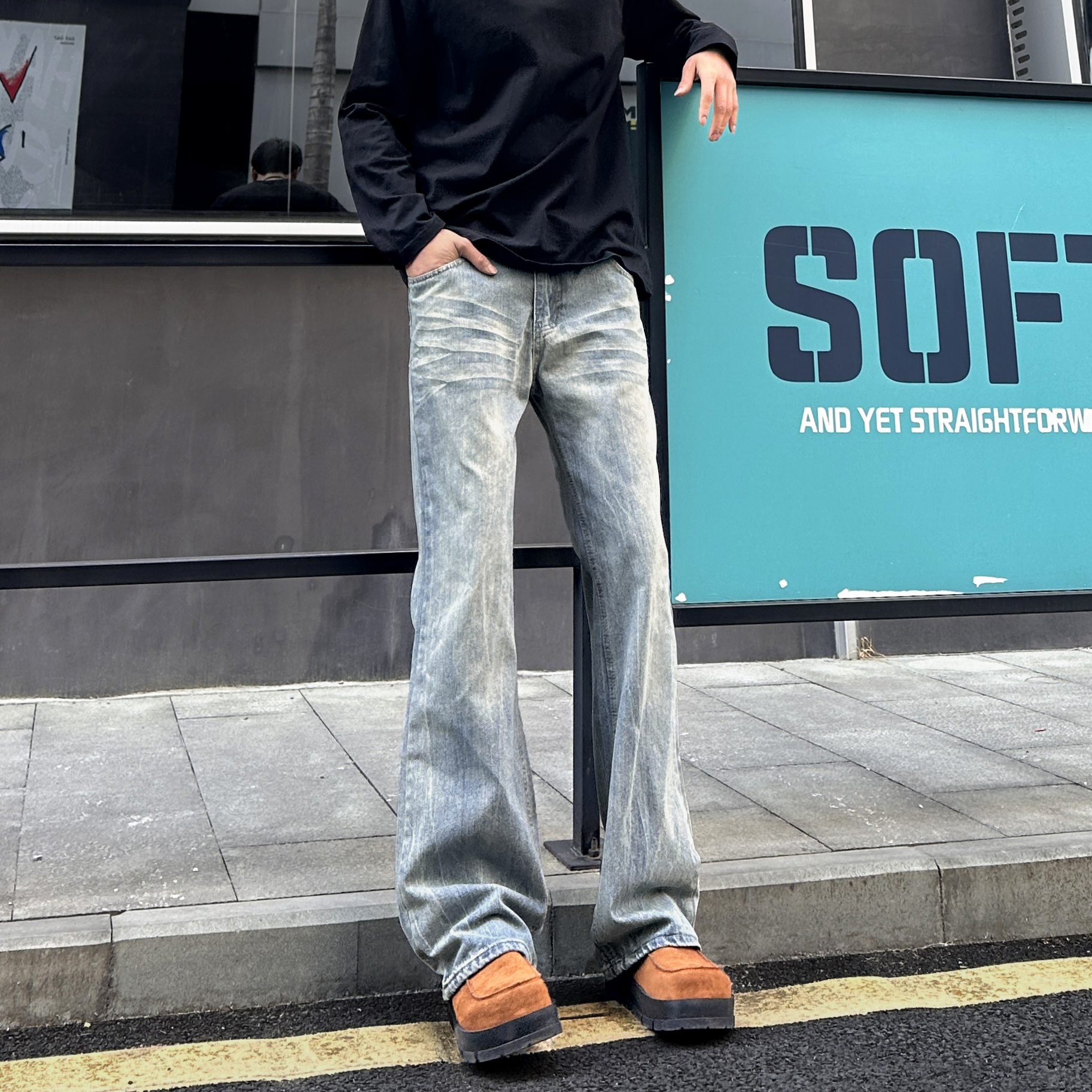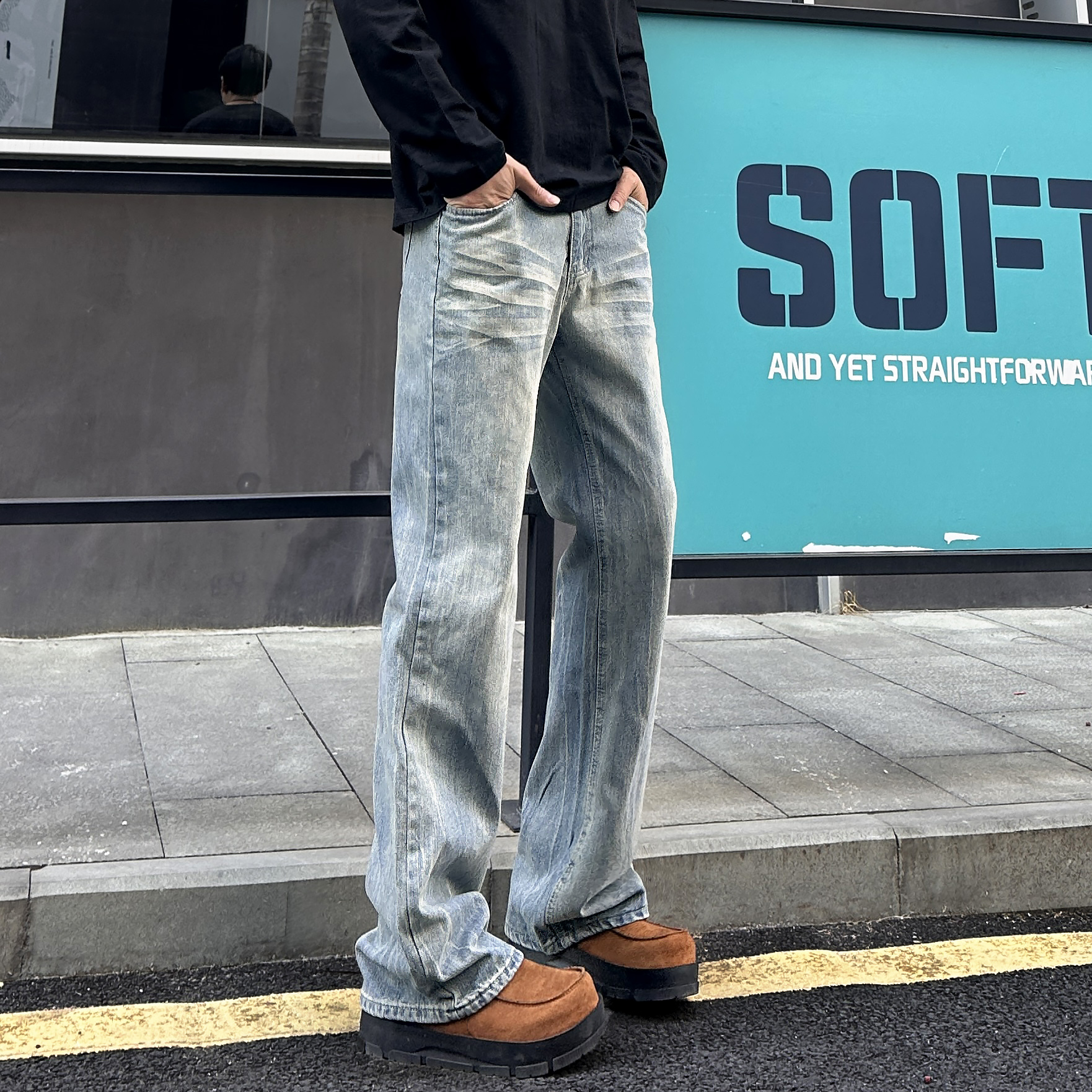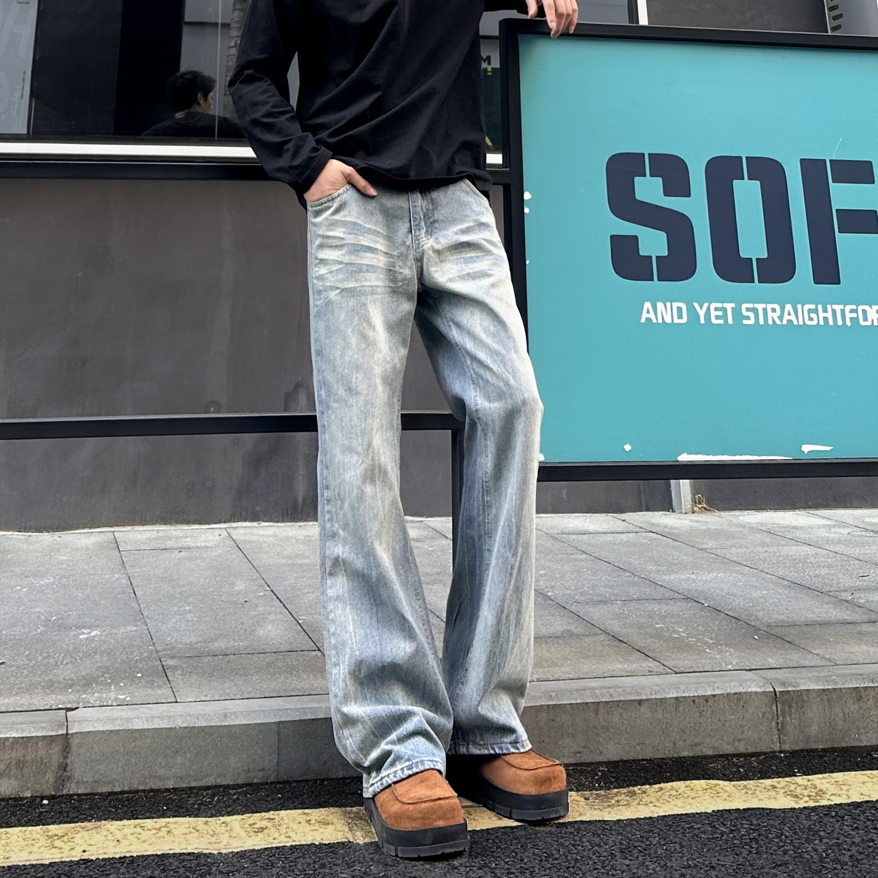cleanfit直筒长裤 新款 潮 男秋季 QUALCOMM猫须竹节纹水洗微喇牛仔裤