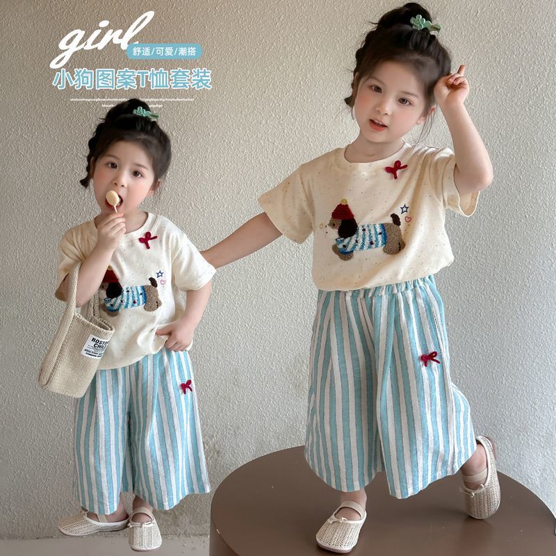 套装 叠穿内搭T恤木耳边牛仔阔腿裤 新款 蓝色镂空针织背心裙女秋季