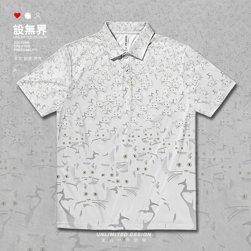 无界 000D设 黑猫白猫可爱萌宠猫咪密集满印速干polo衫 男女T恤夏装