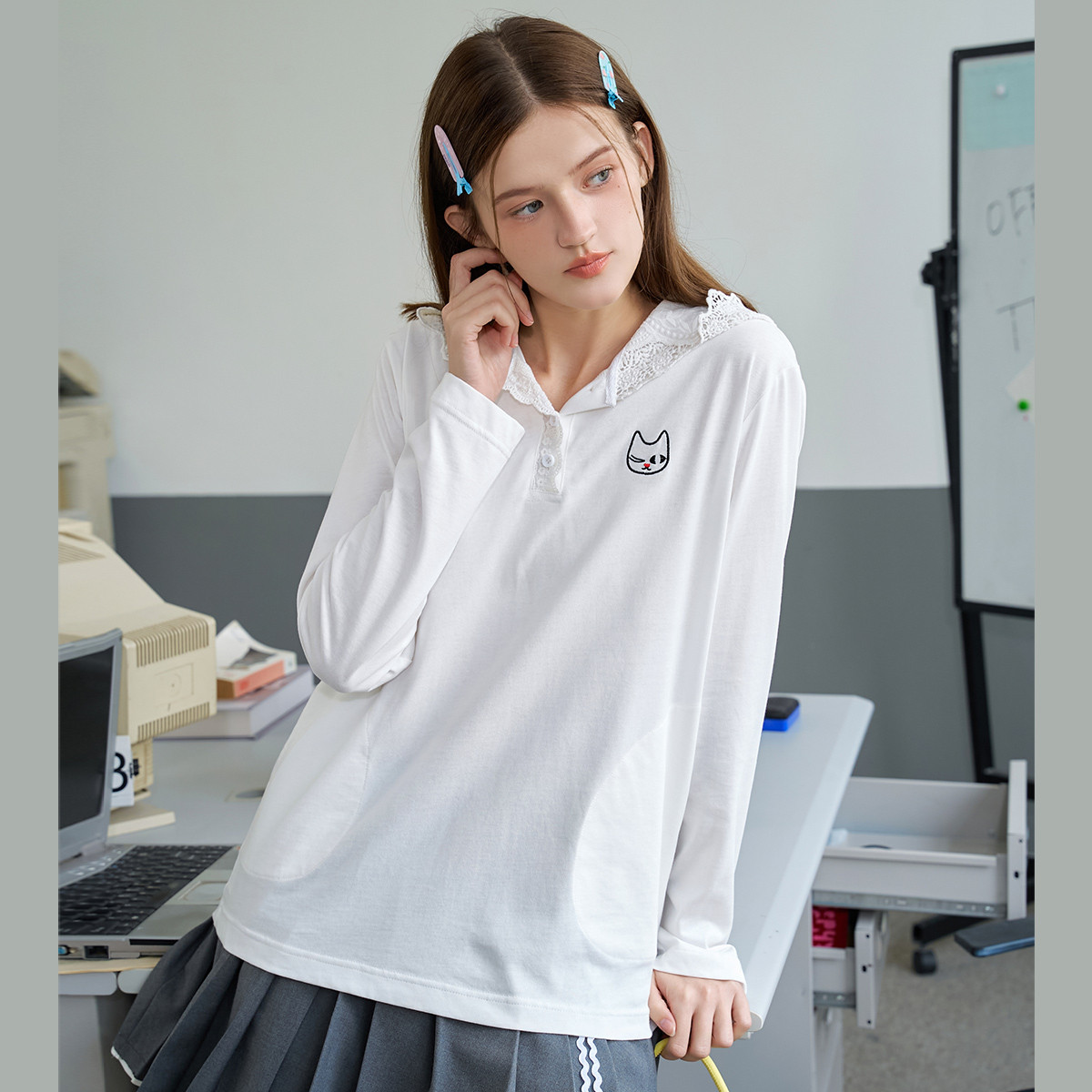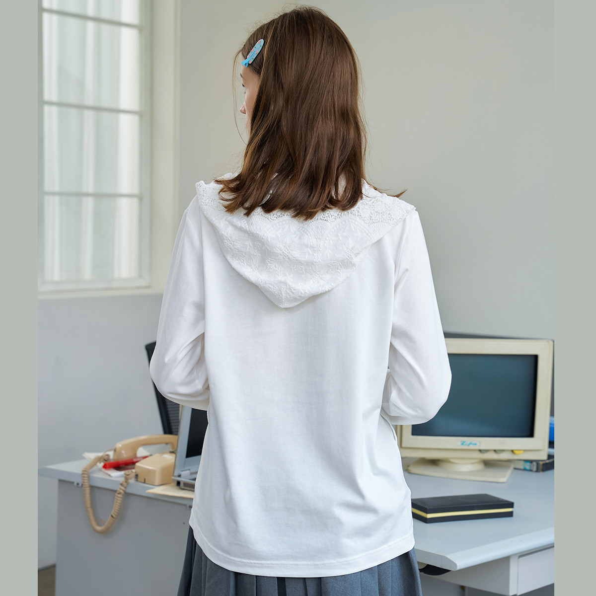 100%棉 女式 蕾丝连帽凉感防晒长袖 2025秋季 T恤 罩衫 a02