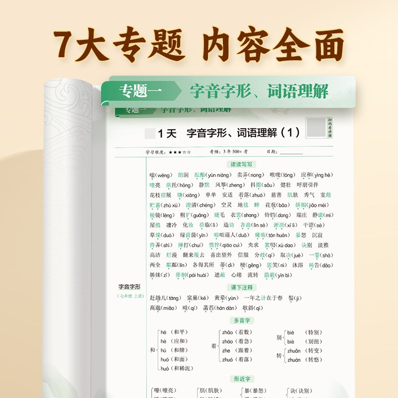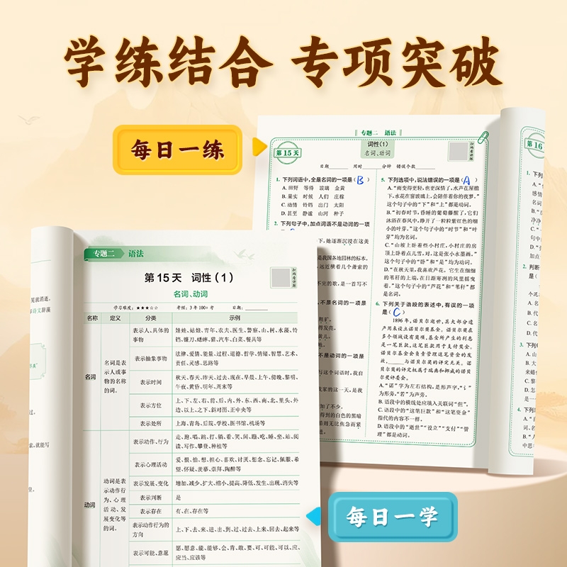 初中衔接选择题填空题中考基础知识考点提分手册天天背1 初中语文基础知识专项训练每日一学一练高效训练人教版 易蓓淘工厂自营