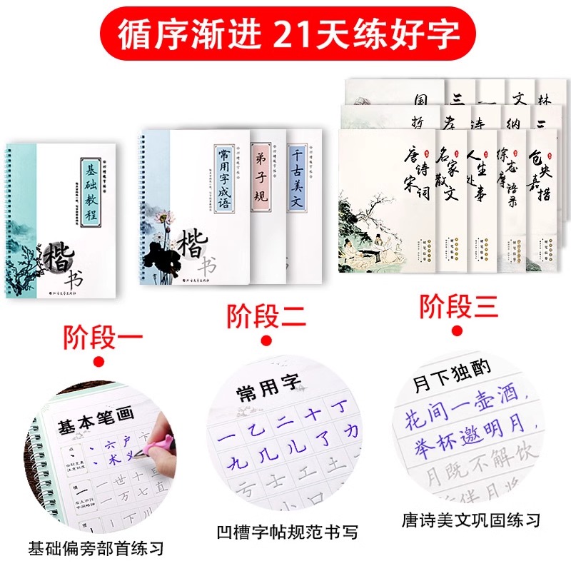 正楷凹槽字帖成人练字练字帖成年静心楷书入门钢笔练字专用练习硬笔书法练字本大学生男女生初高中生楷体速成初学者反复使用写字贴