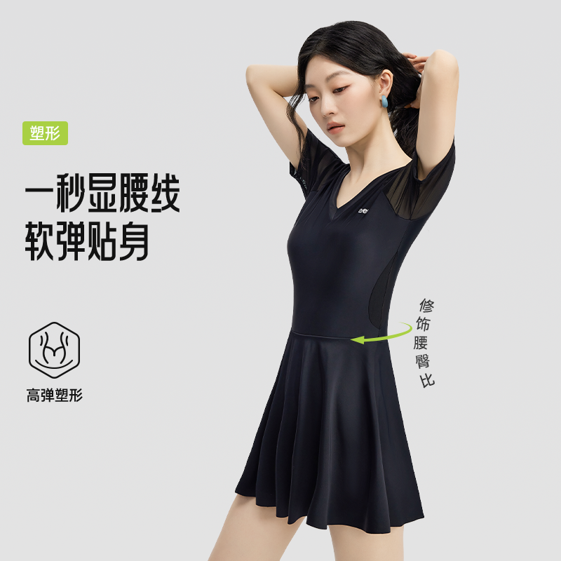 温泉度假女士保守游泳馆泳装 2025新款 连体泳裤 安踏小蛮腰泳衣女款