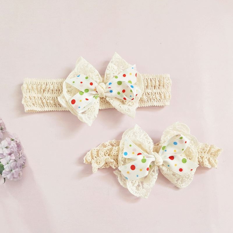 新款 清新甜美公主发饰波点女宝宝周岁网纱蝴蝶结发带婴儿头饰田园