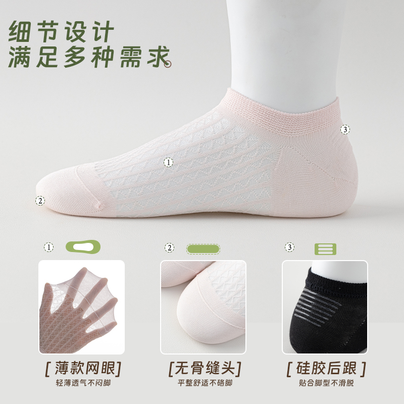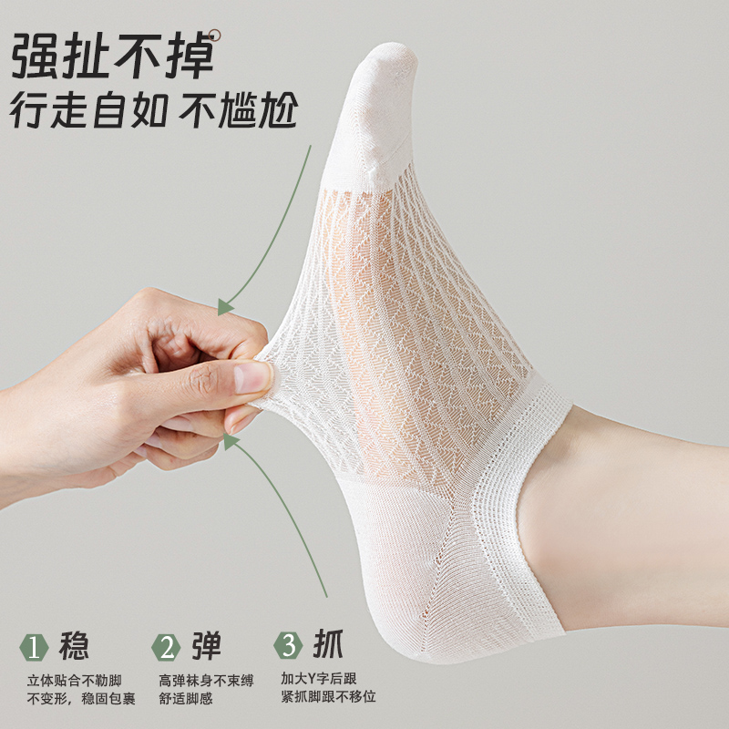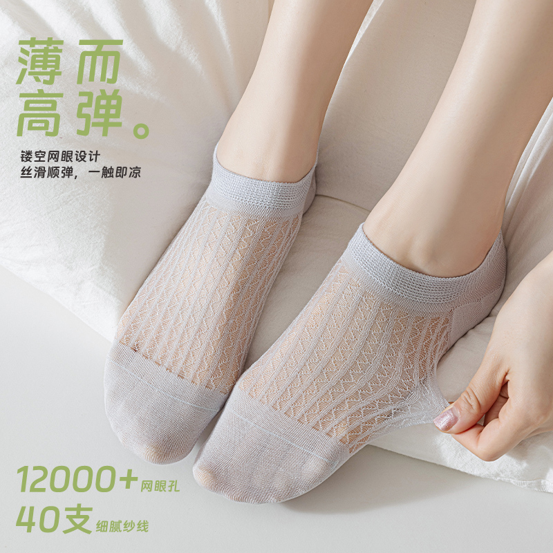 白色丝袜子女无骨桑蚕春夏季 网眼船袜透气袜浅口不掉跟隐形袜 薄款