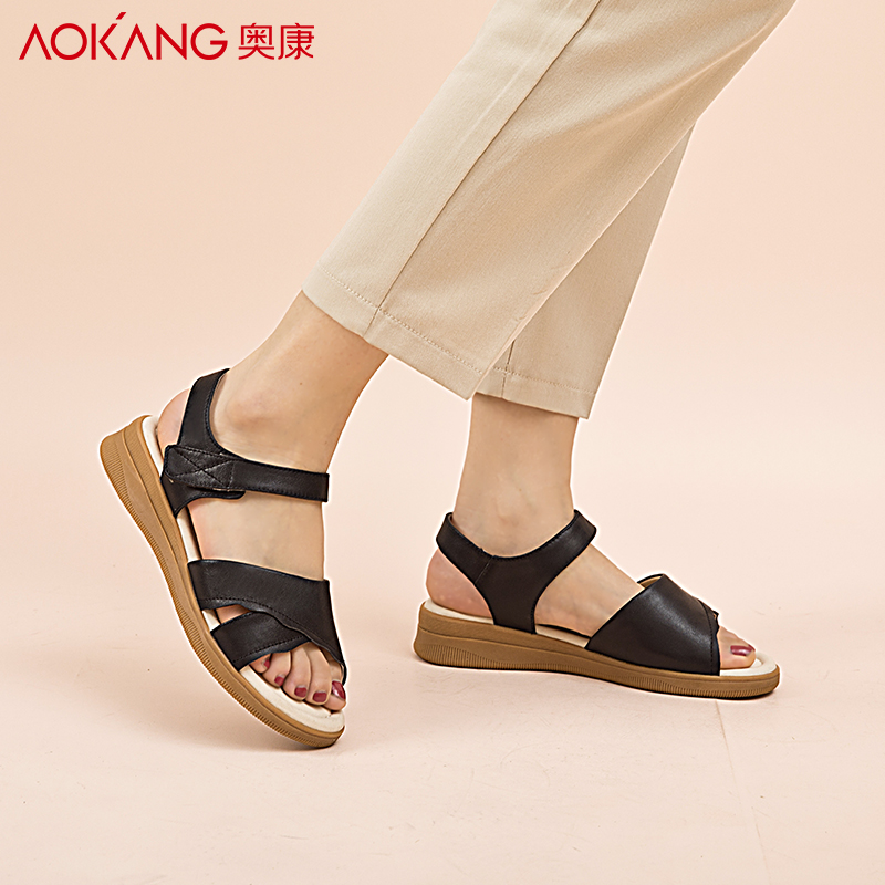 真皮防滑中老年爸爸拖鞋 牛皮休闲外穿沙滩鞋 男2025夏季 老人头凉鞋
