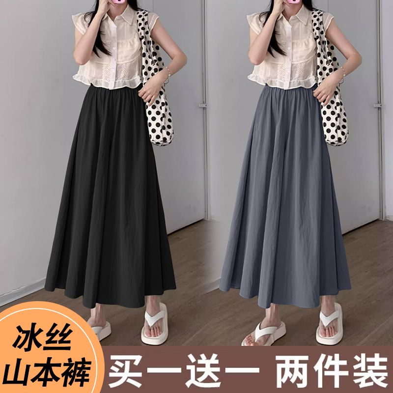 高腰垂感宽松休闲肌理感阔腿裤 白色奶芙冰丝山本裤 女夏2025年新款
