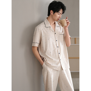 睡衣春秋季 家居服套装 薄款 夏天冰丝凉感加大码 莫代尔长袖 轩靓男士