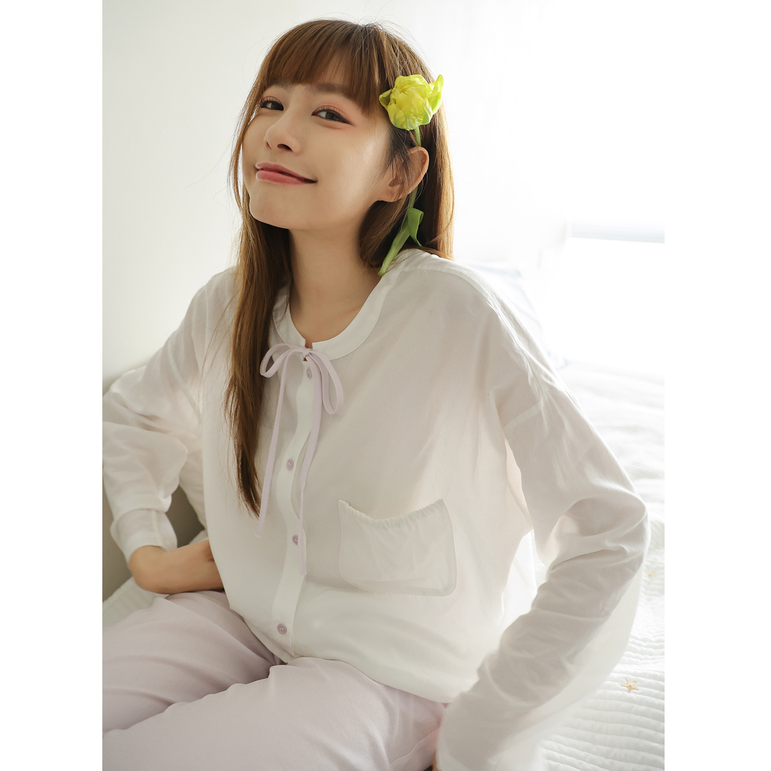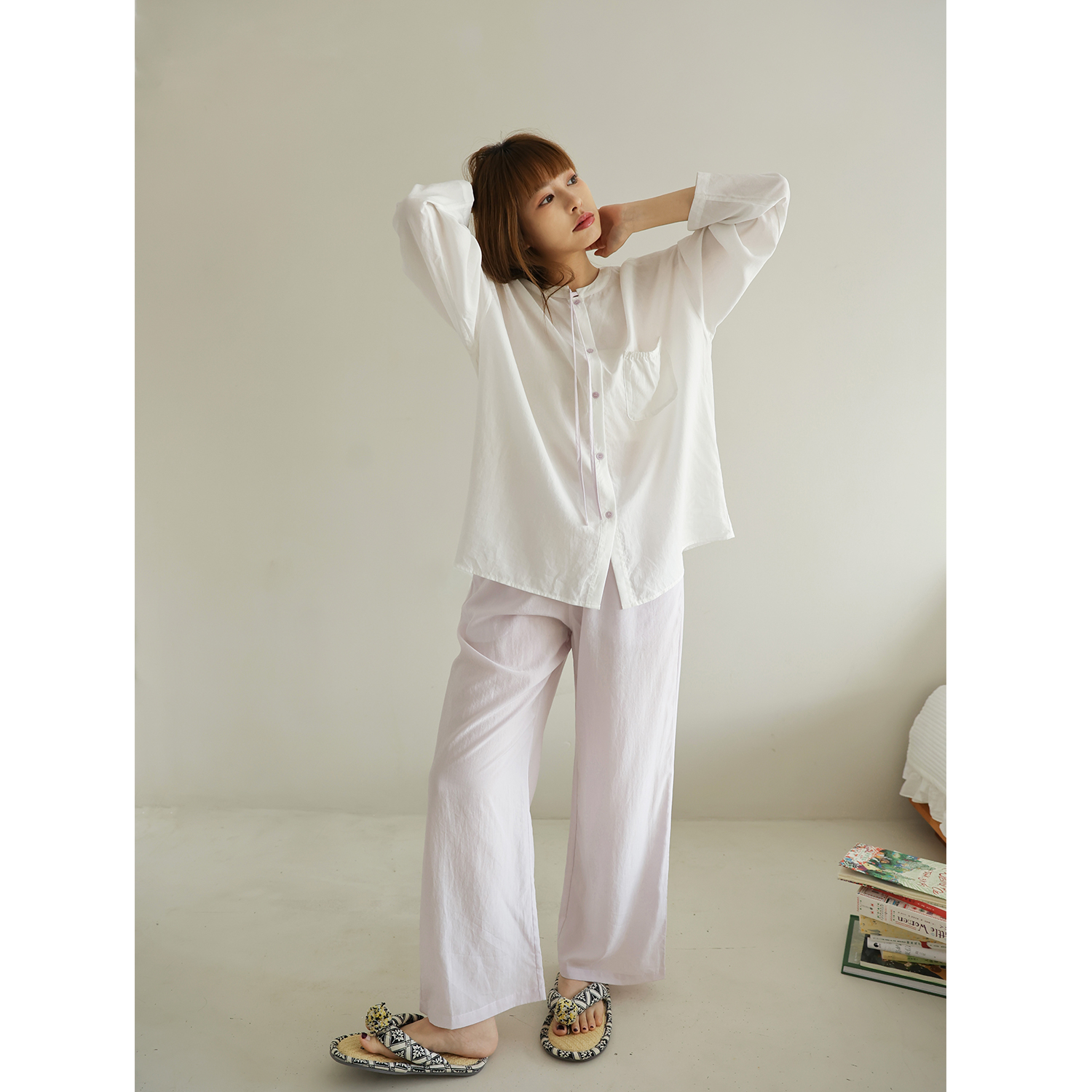 MollyRosa白月光浅紫100%轻奢天丝莱赛尔睡衣女士长袖 家居服 长裤