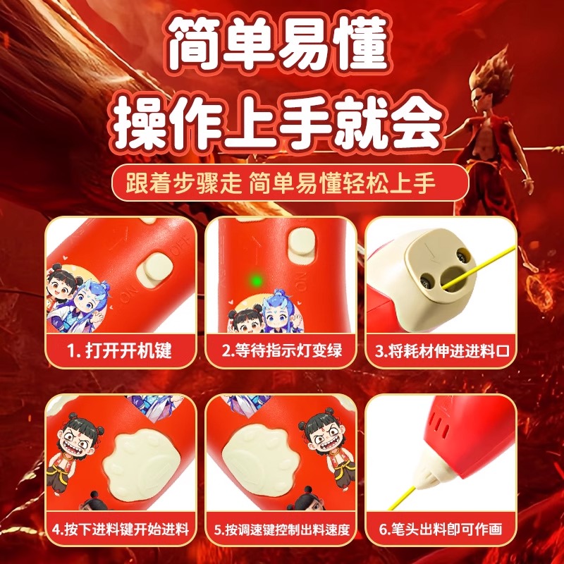 哪吒3d打印笔儿童款 敖丙三d立体绘画笔手工diy女孩子玩具生日礼物