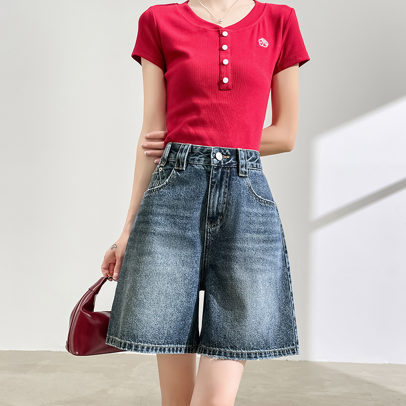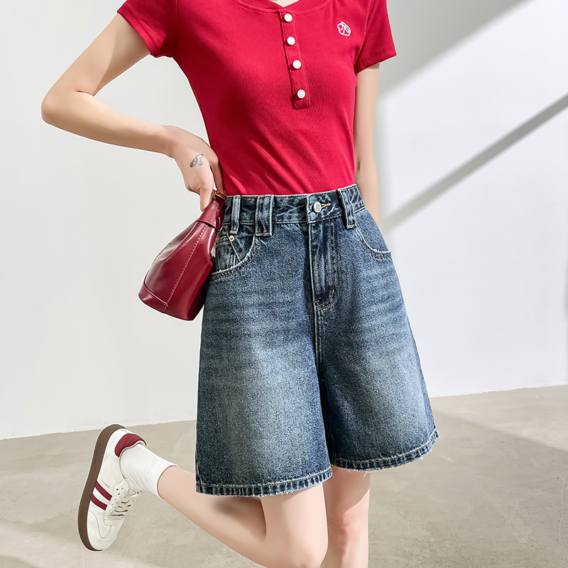时尚 褶皱裤 脚弯刀裤 三福牛仔裤 子女装 冬季 宽松长裤 510496 2025新款