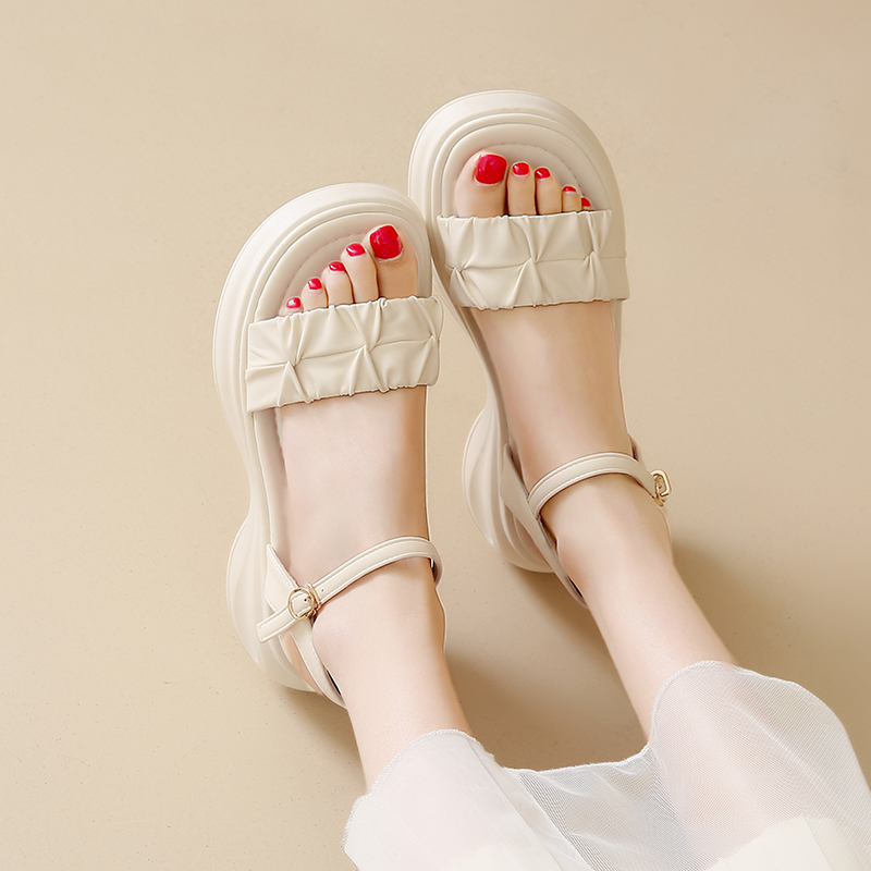 凉鞋 软底不累脚配裙子时尚 女2025夏季 厚底罗马鞋 新款 气质黑色时装
