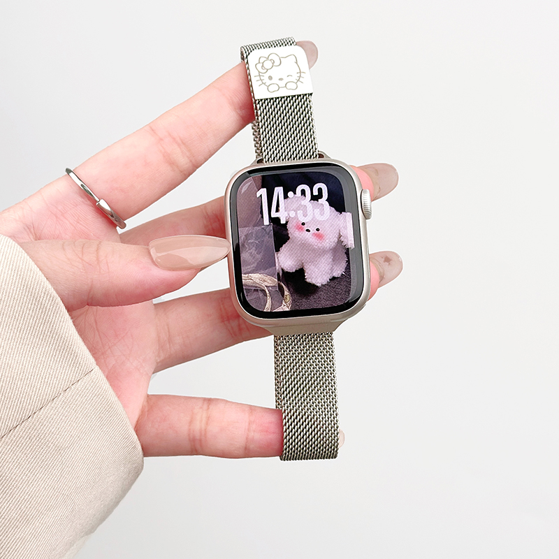女小蛮腰45高级简约s6情侣小众透气s9 10苹果手表applewatch9表带s8kt米兰尼斯磁吸金属新款 适用iwatch11