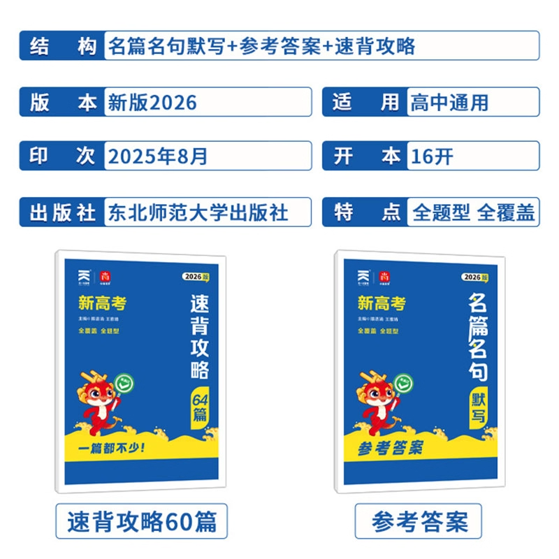 新版 2026小尚同学新高考名篇名句默写高考语文必背64篇古诗文古诗词理解性默写古代文学常识高中必备古诗文背诵速记手册高考复习