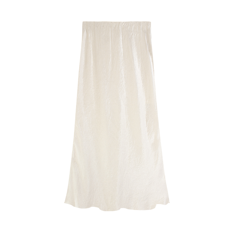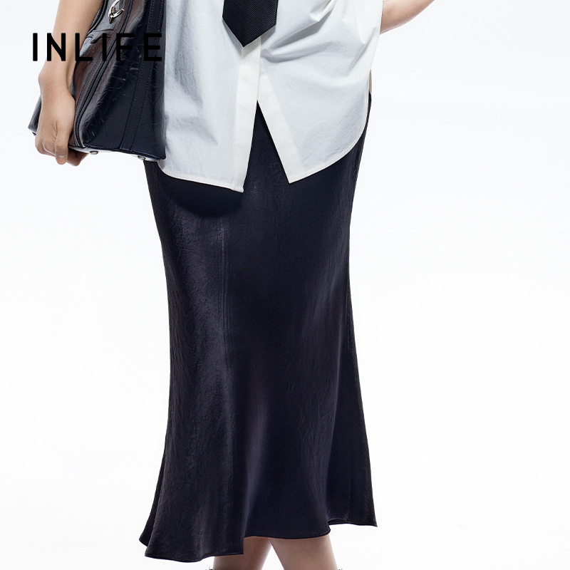 COCOBELLA丝光缎面压褶半身裙秋温柔风垂顺遮胯筒裙HS7026