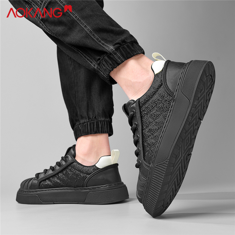 休闲鞋 春秋季 男士 厚底增高运动板鞋 奥康黑色男鞋 小众潮鞋 2025新款