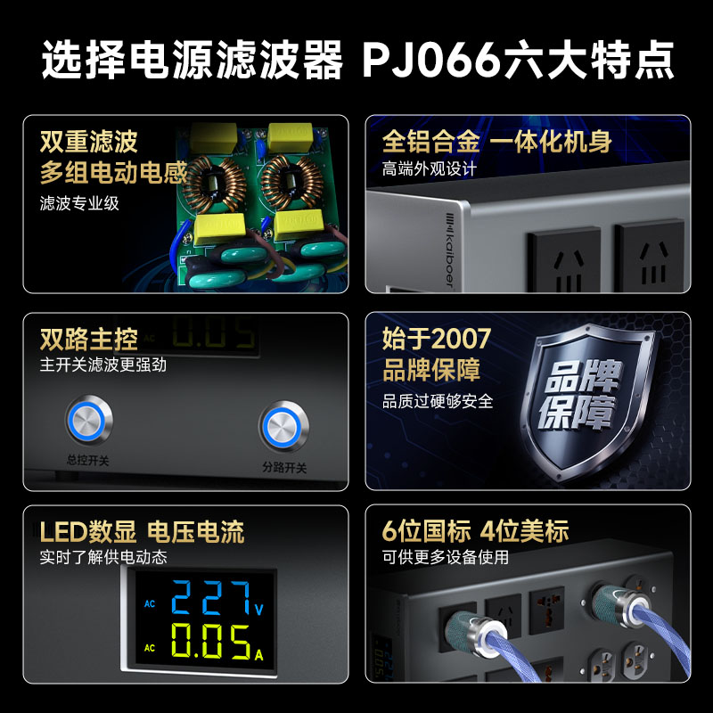 开博尔电源滤波器HiFi音响电源插排专用降噪抗干扰发烧电源净化器