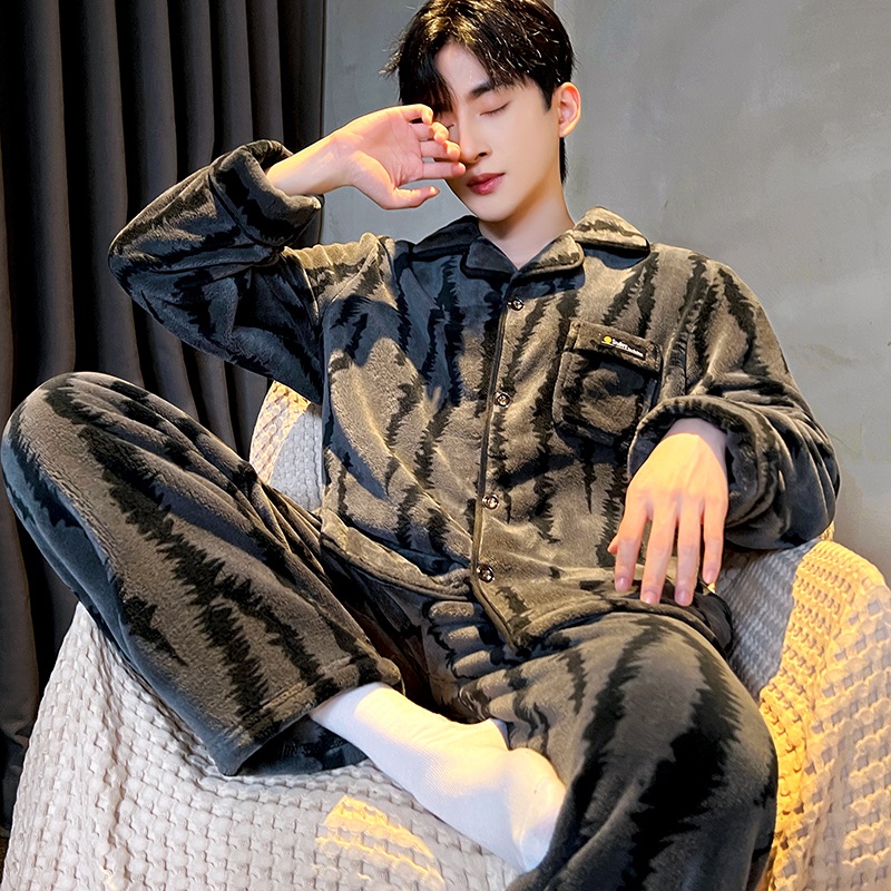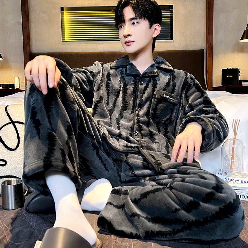珊瑚绒家居服套装 保暖睡衣冬季 男士 法兰绒加厚加绒2025年新款 男款