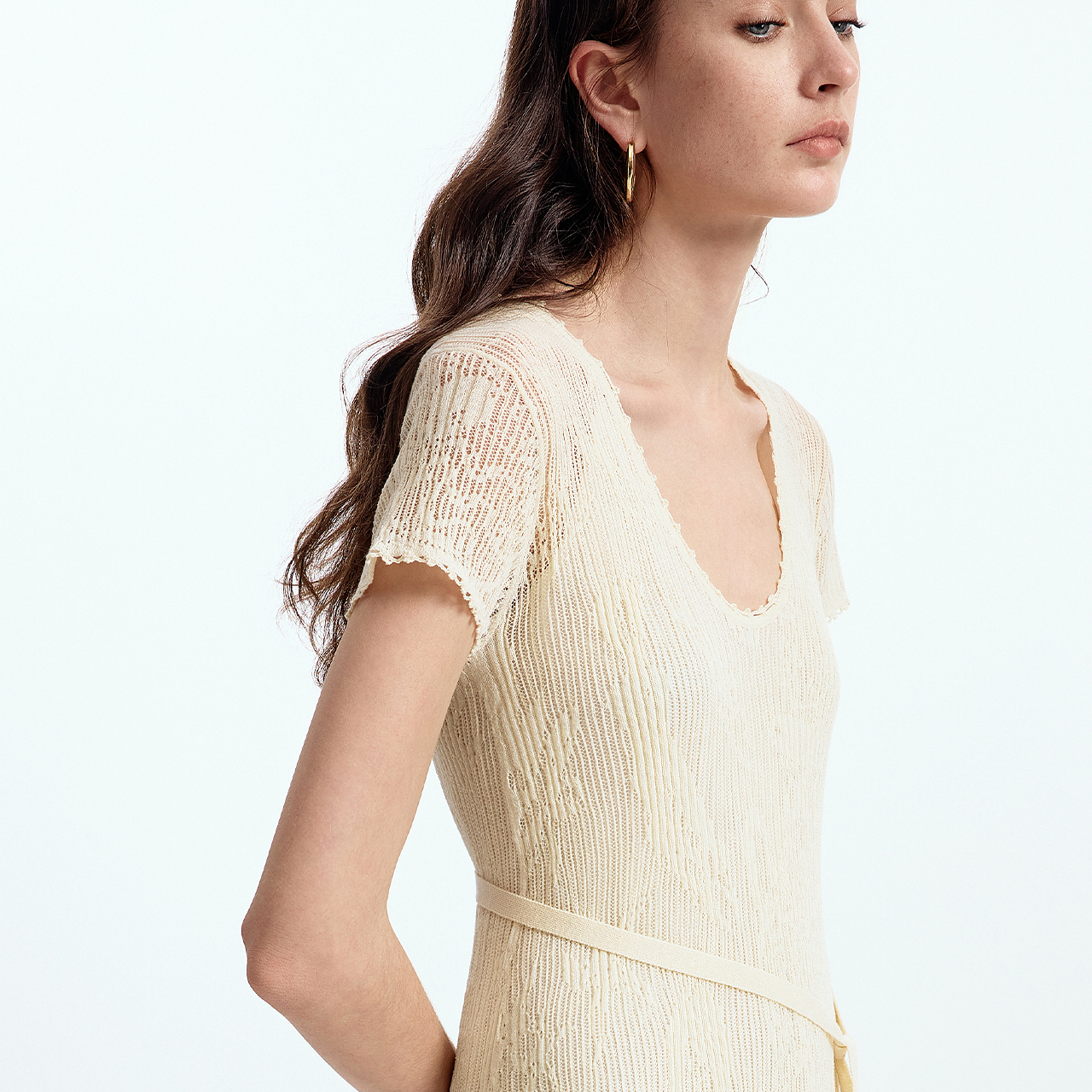 设计师款 佐丹奴针织裙女温柔风麦穗提花木耳边A摆连衣裙18465513