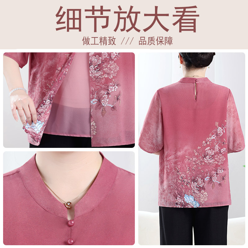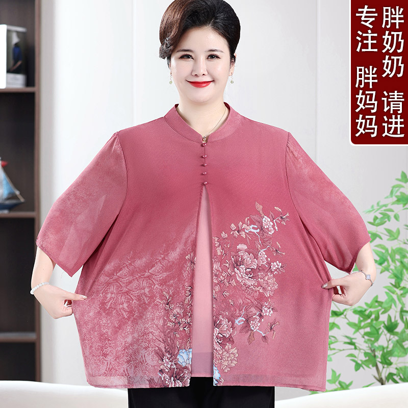 女装 加肥婆婆薄款 大码 衬衫 上衣 t恤胖奶奶妈妈宽松夏季 中老年时尚