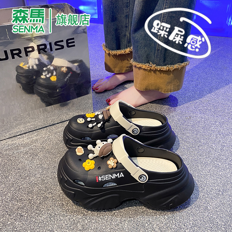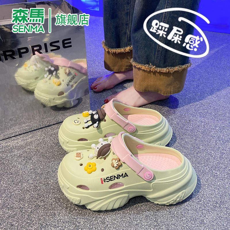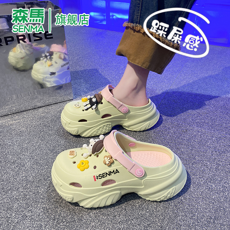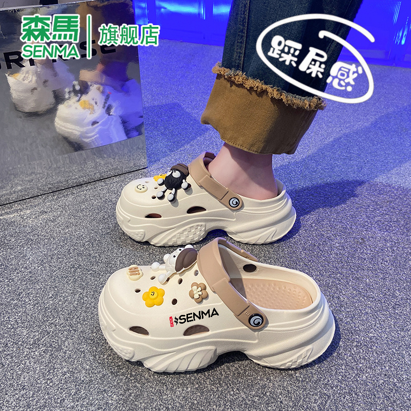 户外运动防滑防臭沙滩凉鞋 外穿厚底增高包头拖鞋 女夏季 森马洞洞鞋