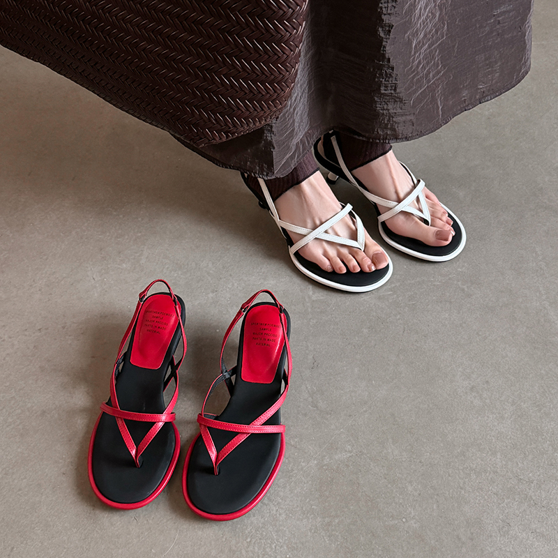 真皮圆头拼色细高跟夹脚细带凉鞋 新款 2025夏季 开怀依足原创设计