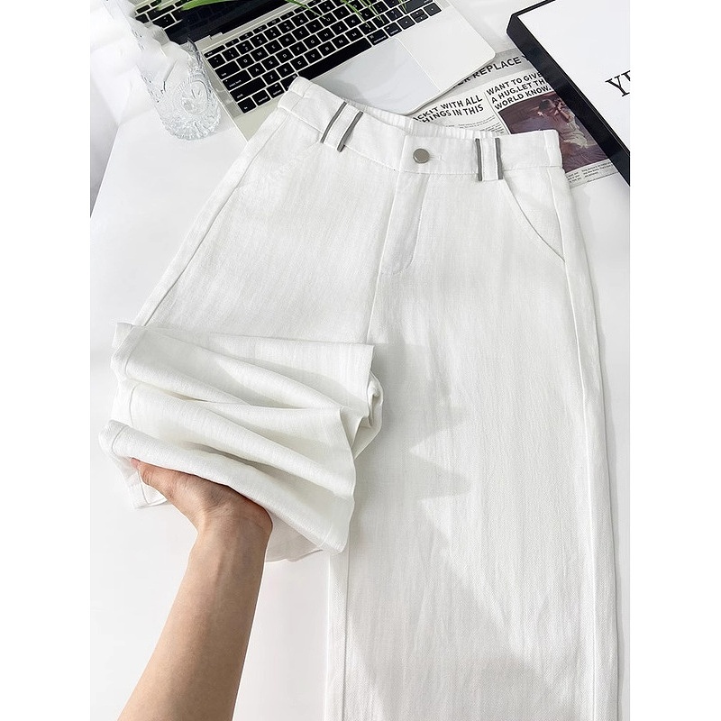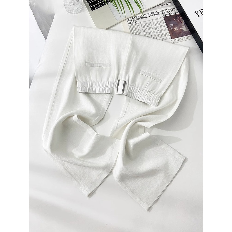 阔腿裤 妈妈休闲棉麻苎麻直筒裤 女2025夏季 大码 子 薄款 天丝亚麻窄版
