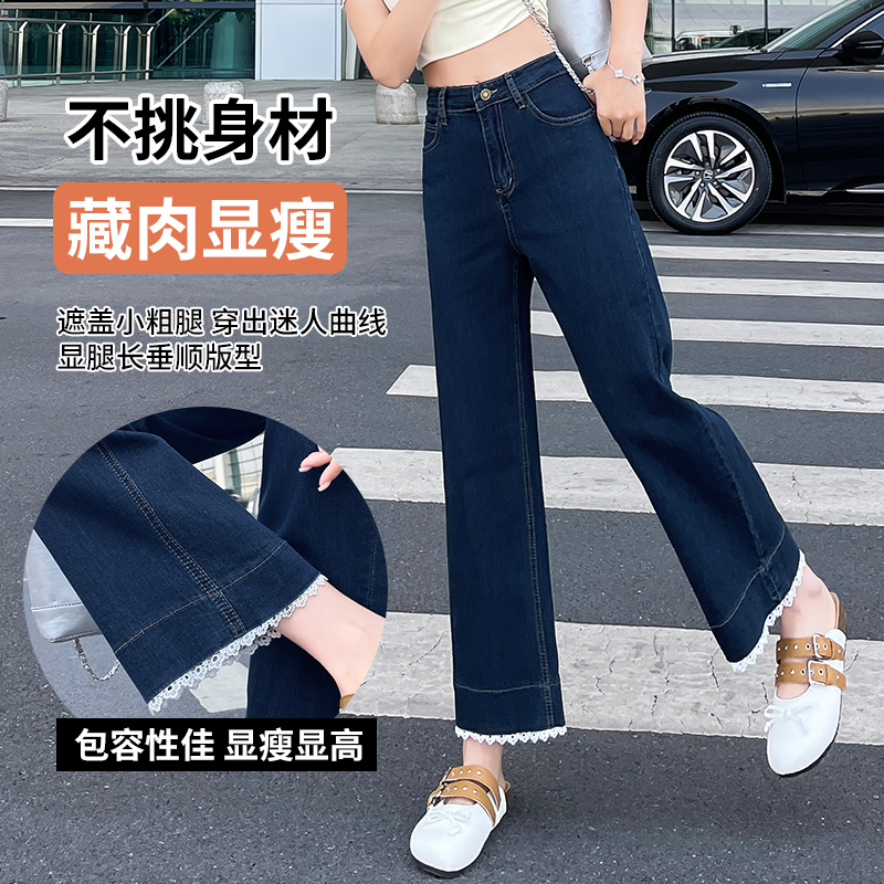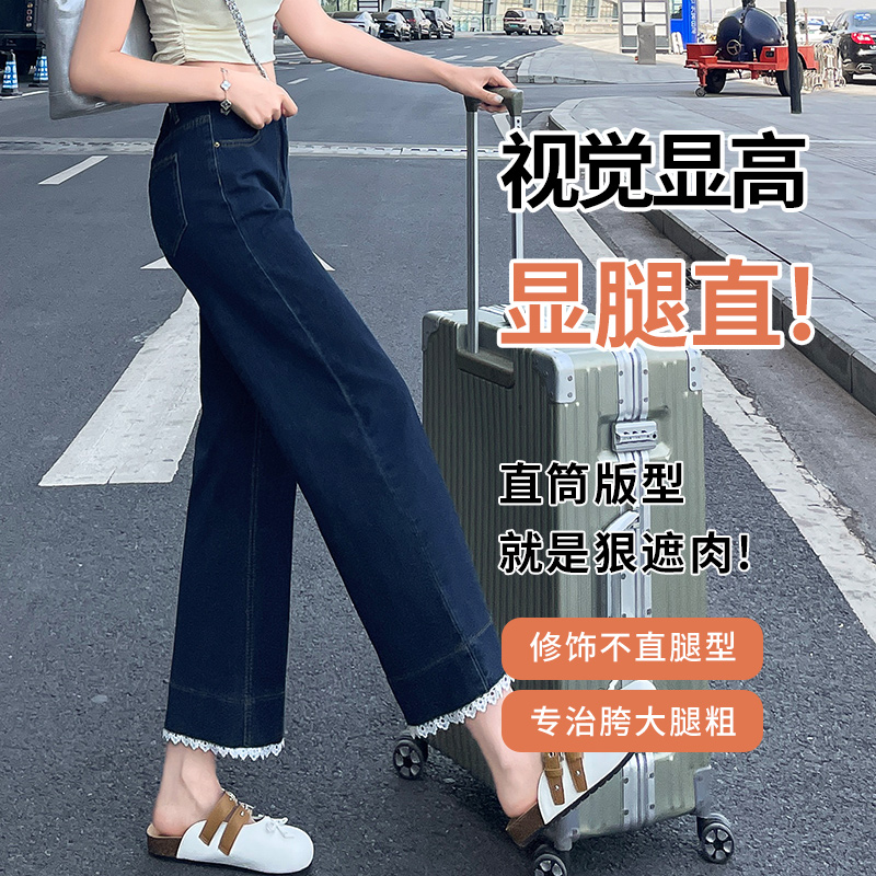 女2025新款 不易掉色裤 秋季 阔腿裤 宽松窄版 娅丽达丹宁蓝直筒牛仔裤