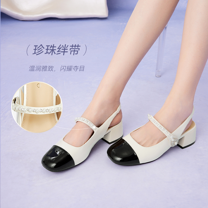 潮流复古小香风粗跟后空女凉鞋 时尚 B2358BH5 新款 百思图2025夏季