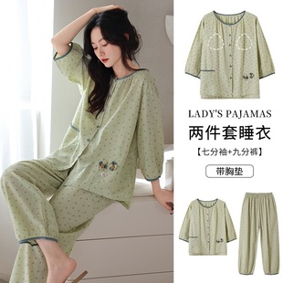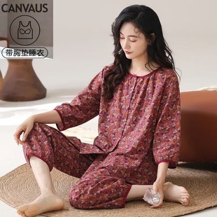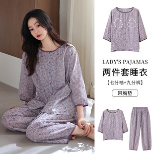 秋2025新款 裤 秋季 长袖 家居服带胸垫高级感 女士套装 莫代尔睡衣女款