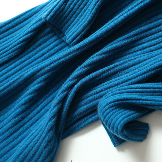 加厚宽松 羊绒衫 冬日贵气氛围 开叉湖蓝色坑条羊绒连衣裙女中长款