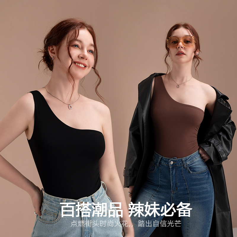 收腹提臀紧身性感美体衣 薄款 LOUSXXY新款 斜肩塑身连体衣女夏季
