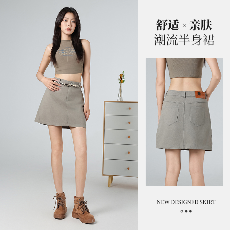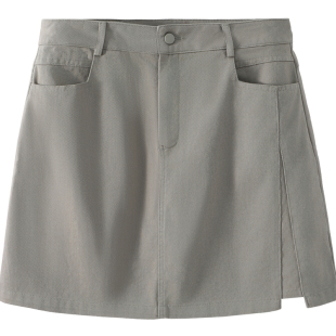 desire后中开叉连腰直筒半身裙2025秋季 orange 新款 焦糖饼干