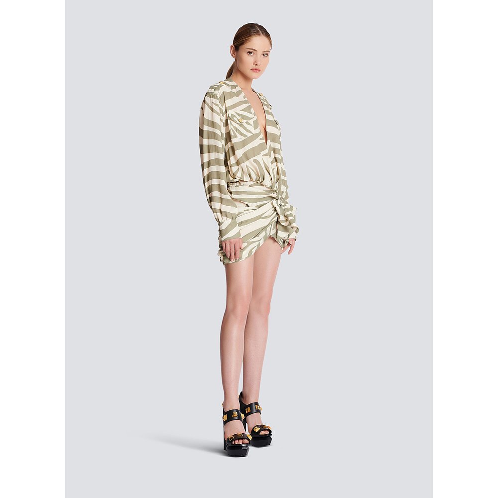 V领针织拼接印花中长裙eahchanie 气质连衣裙法式 奕辰2025秋季 新款