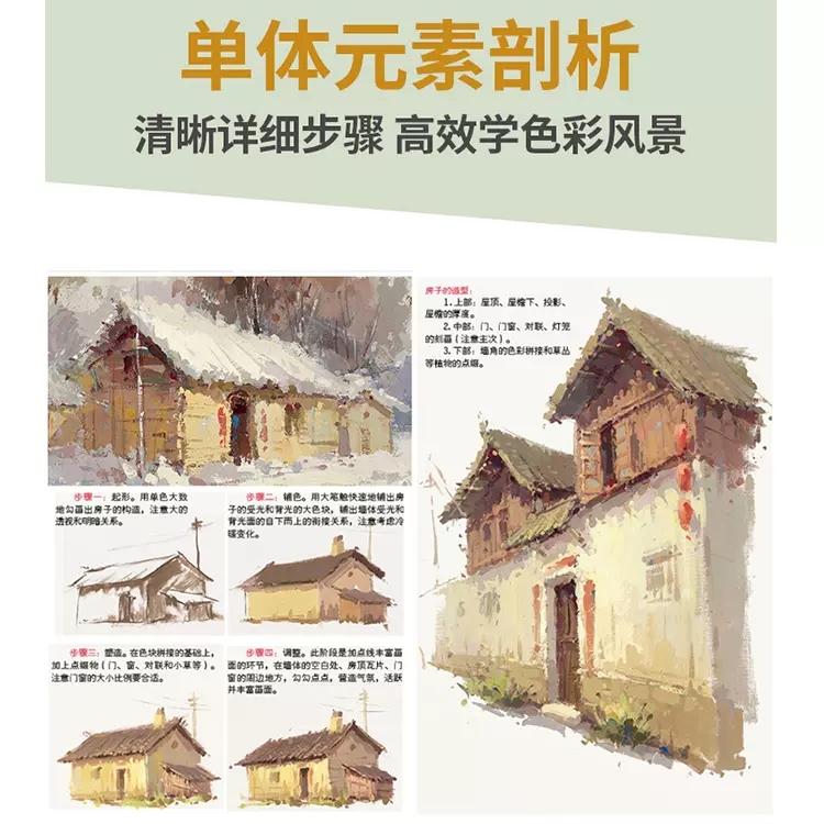 讲透色彩风景一本通 水粉画风景零基础入门自学大师风景对画临摹范本单体色稿色调技法初学美术绘画册书籍教程学材国美院联考