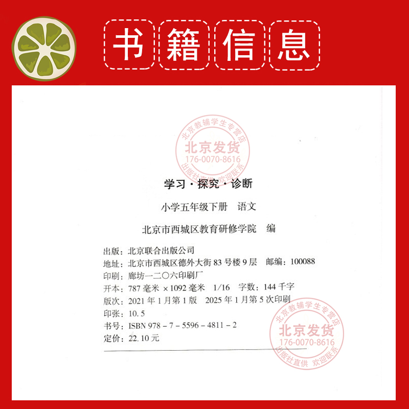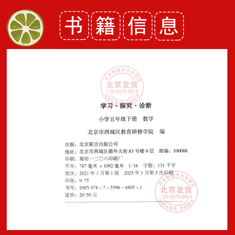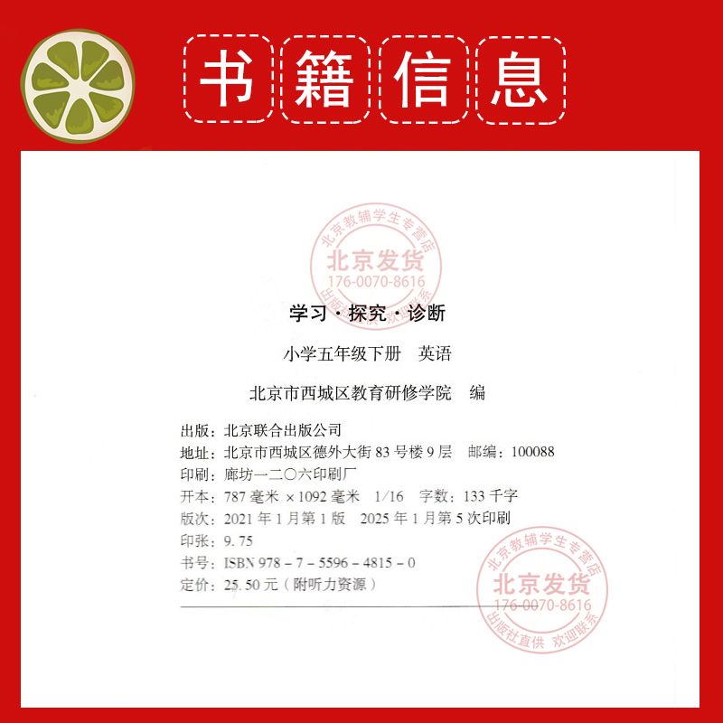 学探诊五下语文数学人教英语外研版 英语3本装 北京市西城区教育研修5下学探诊小学3本 数学 2025秋学习探究诊断五年级上下册语文