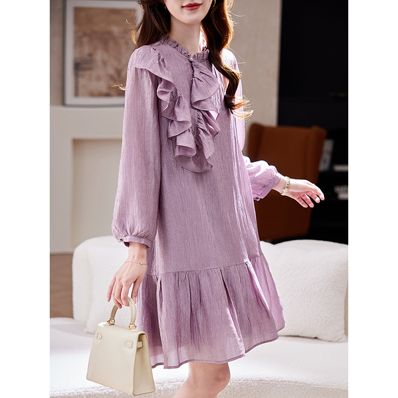 优雅长袖 朗姿深灰色法式 轻礼连衣裙女捏褶高级感2025年 免定金