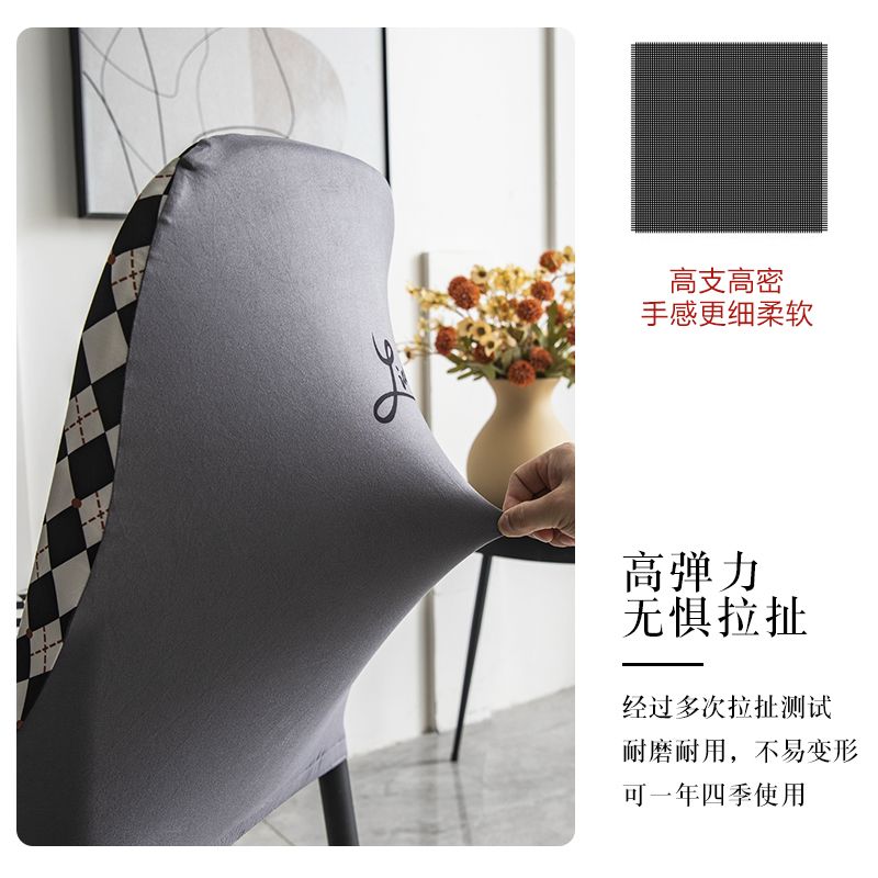 弧形椅子套罩轻奢高弹防尘双拼印花餐椅套全包四季 通用弧形餐椅套