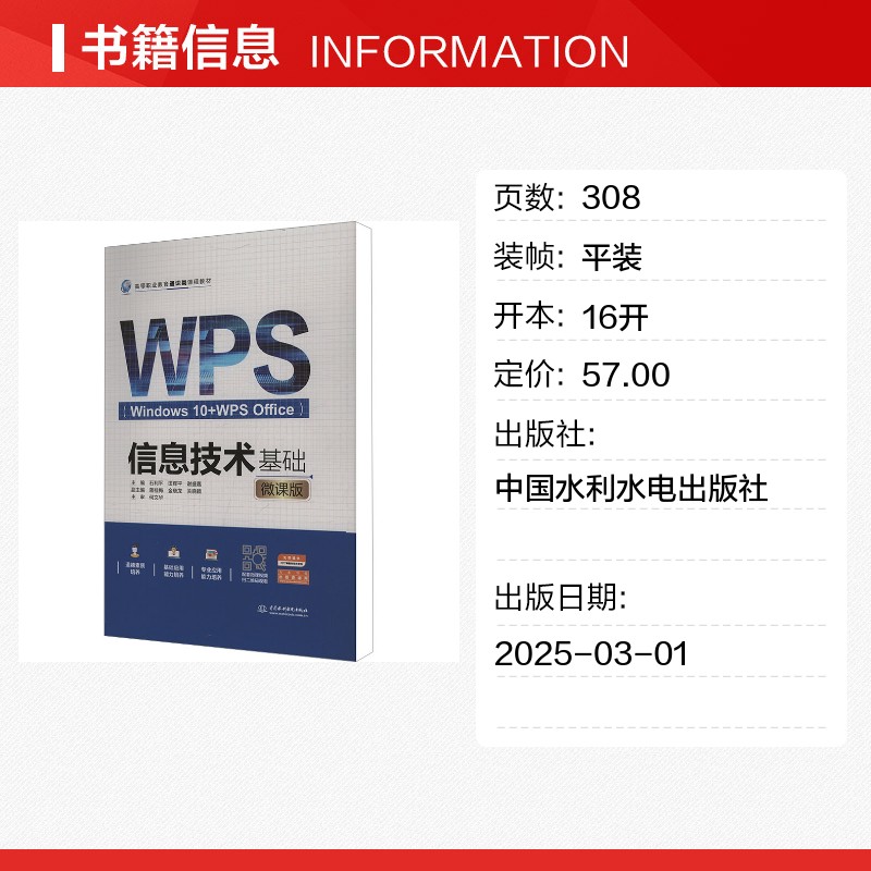 Office 田辉平 Windows WPS 图书籍 社 信息技术基础 新华书店正版 微课版 编 谢盛嘉 石利平 中国水利水电出版 大学教材大中专