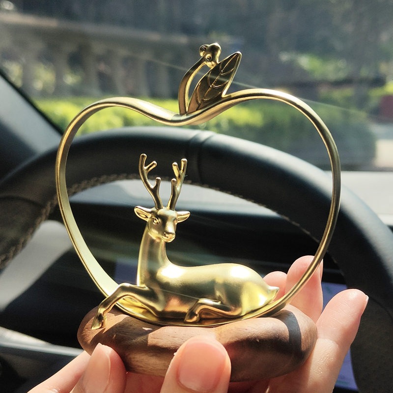 2025新款 饰品 一路平安鹿汽车摆件全铜中控台饰品高档车内载摆饰装