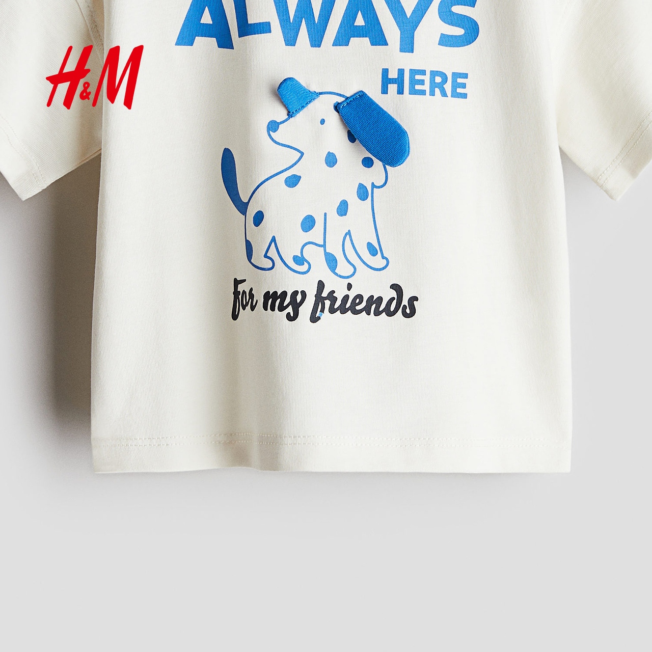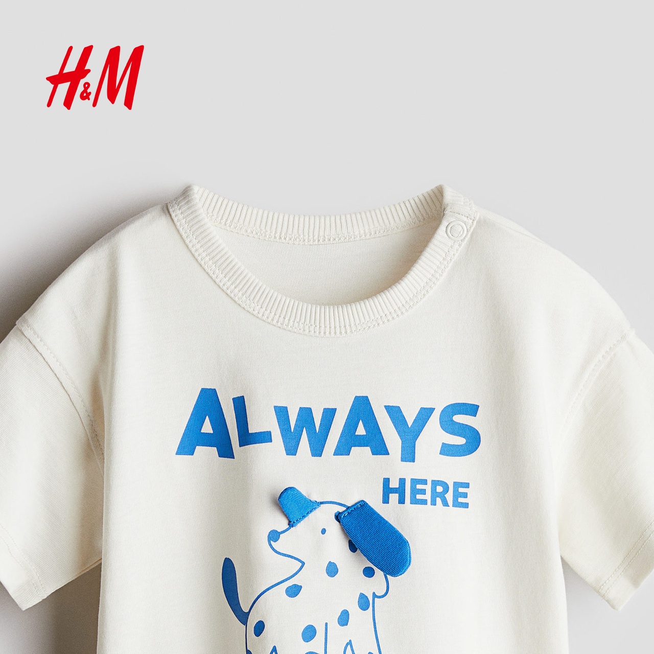 圆领短袖 新款 棉质印花狗休闲上衣1280850 男婴T恤2025秋季 HM童装
