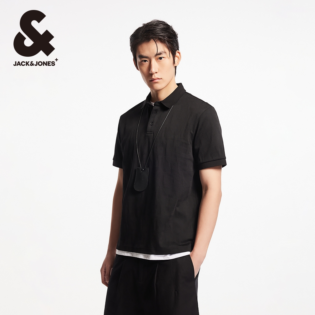 高级感痞帅宽松运动上衣 t恤男秋美式 V37假两件格子翻领polo衫 短袖